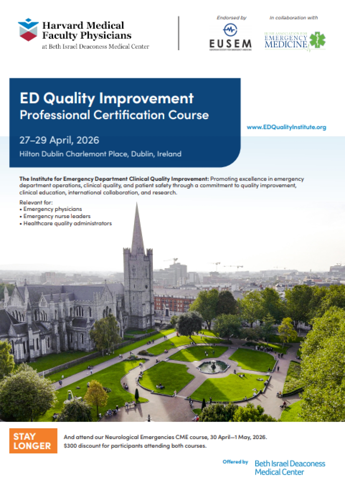 EUSEM endorsed Harvard Medical Faculty Physician courses taking place in Dublin, Ireland